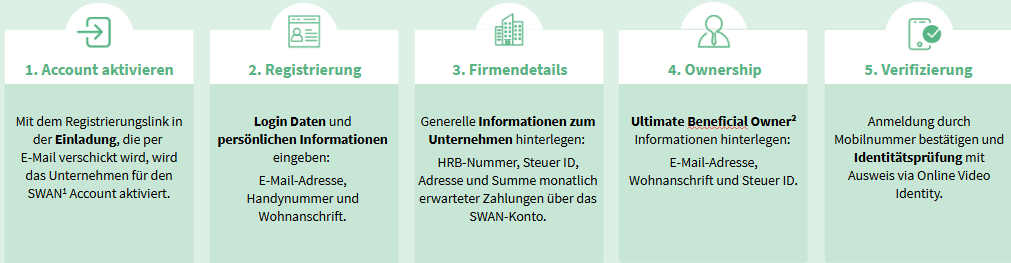 Sobald Sie die KYB Prüfung erfolgreich abgeschlossen haben, dauert die anschließende Verifizierung von Swan maximal 72 Stunden.