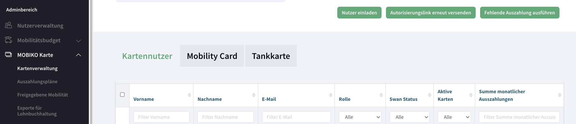Die Mobilität wird innerhalb der Kartenverwaltung an Mitarbeitende wie folgt zugewiesen: