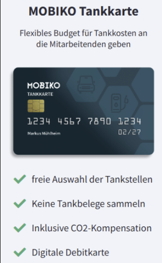 Nutzen Sie den Steuervorteil des Sachbezugs und bieten Sie Ihren Mitarbeitenden einen attraktiven und steuerfreien Mobilitäts-Benefit mit der Tankkarte an. Ein Benefit, der die anderen MOBIKO Module optimal ergänzt. Insbesondere für Mitarbeitende, die privat oder auf dem Weg zu Arbeit nicht auf ein Auto verzichten können.