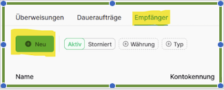 Über „+ Neu“ einen neuen Empfänger anlegen.