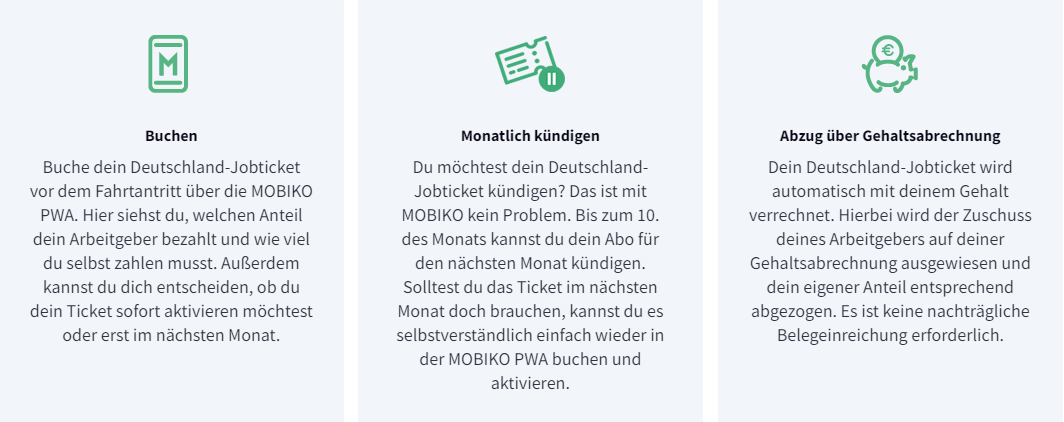 Das „Deutschland-Jobticket“ kannst du mit dem MOBIKO Modul direkt und bequem in der MOBIKO App buchen und flexibel verwalten: