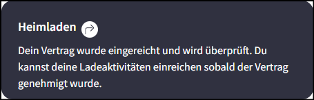 Wir prüfen deinen Vertrag und geben ihn frei. Erst danach kannst du Ladeaktivitäten einreichen (nur bei individuellen Strompreis!) |