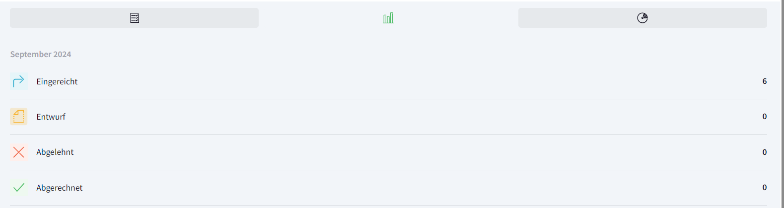 Unter dem Punkt "Eingereicht" hast du deinen Beleg tatsächlich eingereicht.
