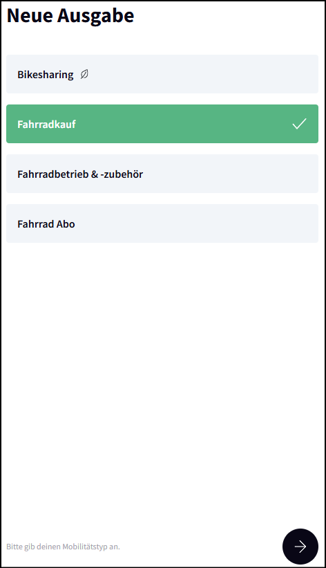 Achtung: Das gilt nur für Mobilitätstypen/-kategorien, die in deinem Budget freigegeben sind.