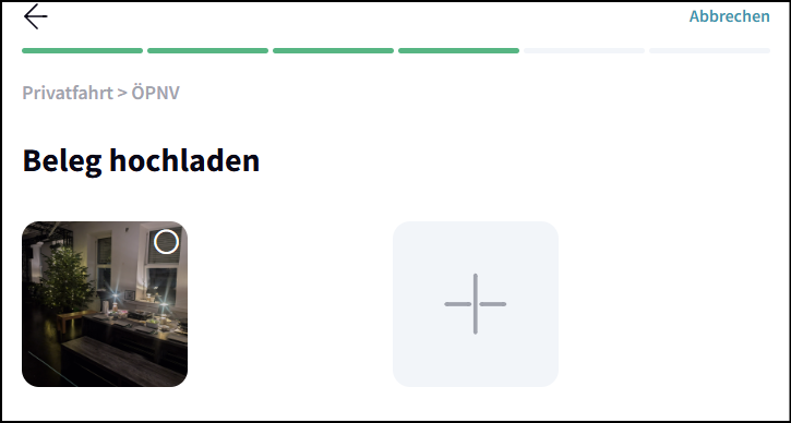 Tippe bei dem Punkt "Beleg hochladen" auf das „+“-Symbol, um den 2. Nachweis für die gleiche Ausgabe hochzuladen.