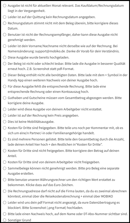 Es gibt verschiedene Gründe, warum ein Beleg abgelehnt werden kann. Die häufigsten sind: