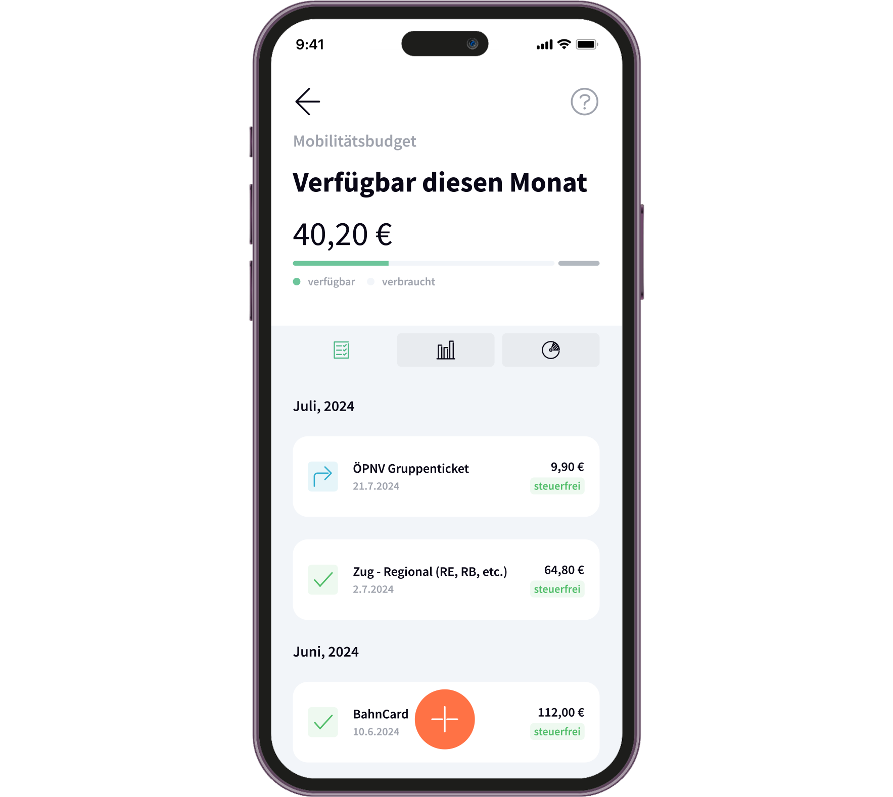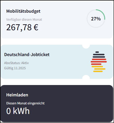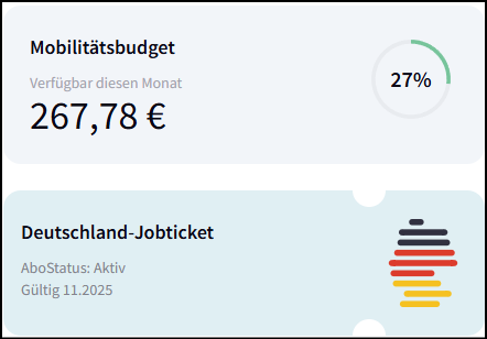 die Mobilitätsbudget-Kachel in deiner App sichtbar ist