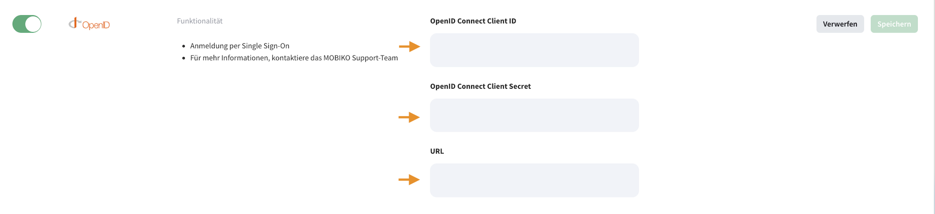 Um SSO mit OpenID Connect einzurichten (mit Anbietern wie z.B. Okta, Keycloak, 1Login), werden im MOBIKO Account sowohl durch den Kunden als auch durch MOBIKO Informationen hinterlegt.
