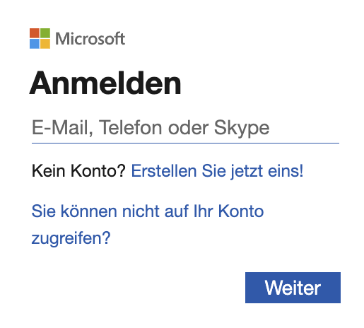 - In der Microsoft Maske mit den Credentials des Administrators anmelden.
