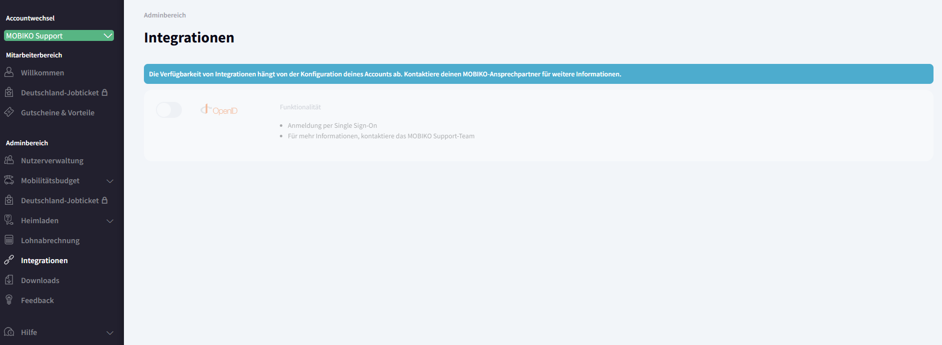 Um das SSO mit OpenID anzuwenden, müssen Sie diese Integration über uns -MOBIKO- freischalten lassen.