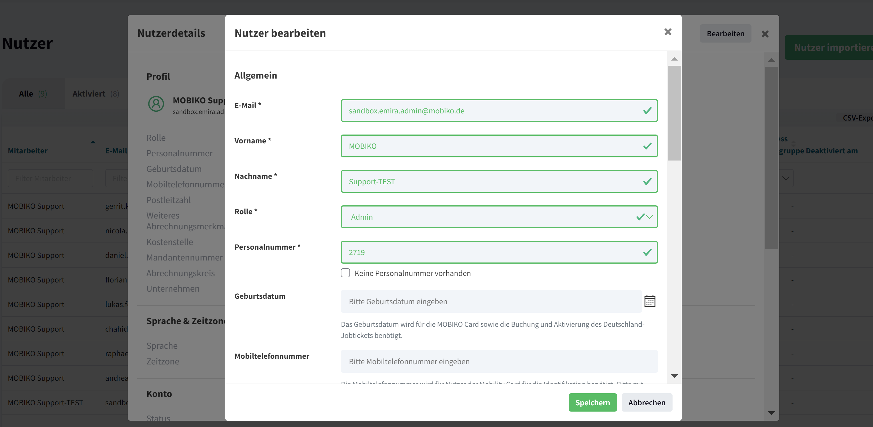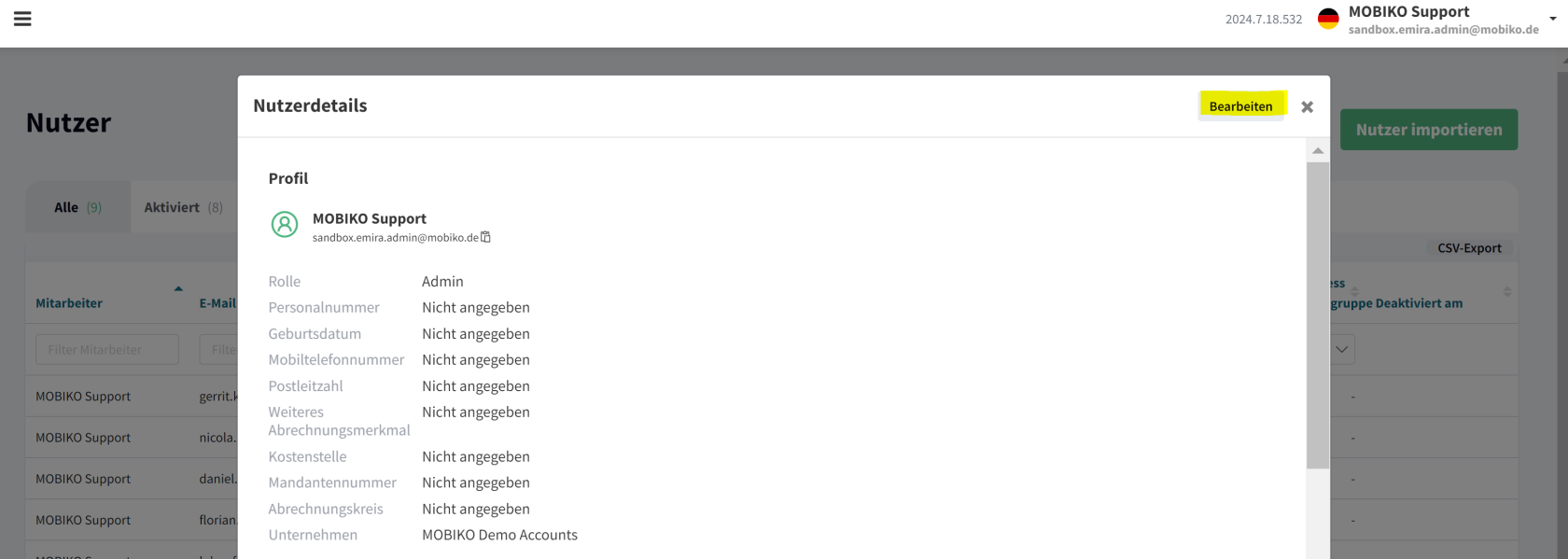Nutzerinformationen bearbeiten