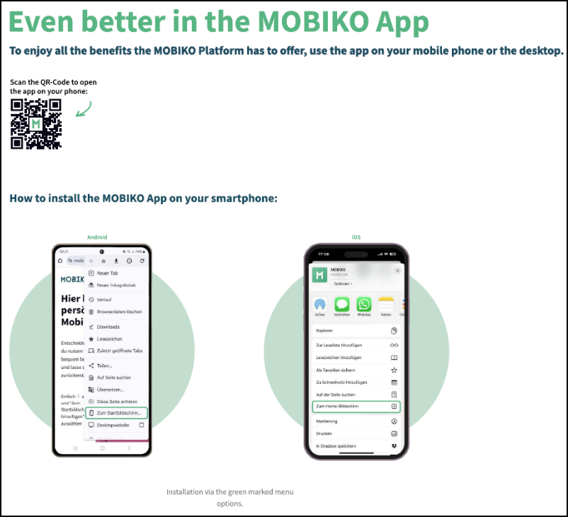 MOBIKO does not use a traditional app from the App Store. Instead, we offer a Progressive Web App (PWA).